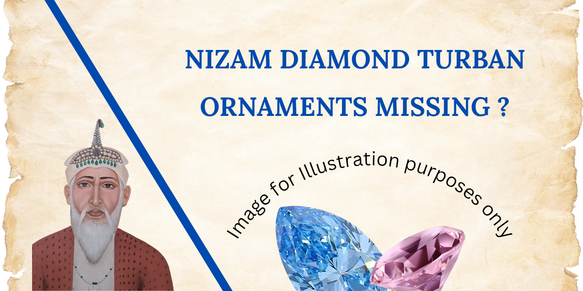 Little has been reported about the pink diamond from the turban ornament worn by the first Nizam. But rumors about the blue diamond, would very likely increase efforts to trace the missing pink diamond. Observing diamond turban ornaments during reign of the Nizams, it does appear that most ornaments had a precious gemstone in the center – rubies, sapphires and emeralds seemed to have been the preferred choice. Diamonds as center stones in turban ornaments seem to have been very rare.